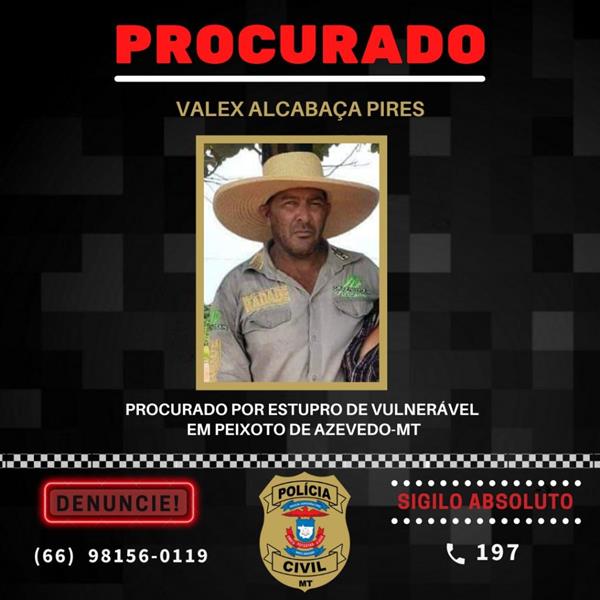 Informações que possam levar ao paradeiro do procurado podem ser enviadas ao disque-denúncia da Polícia Civil pelo 197 ou no telefone da delegacia (66) 98156-0119, com sigilo garantido.