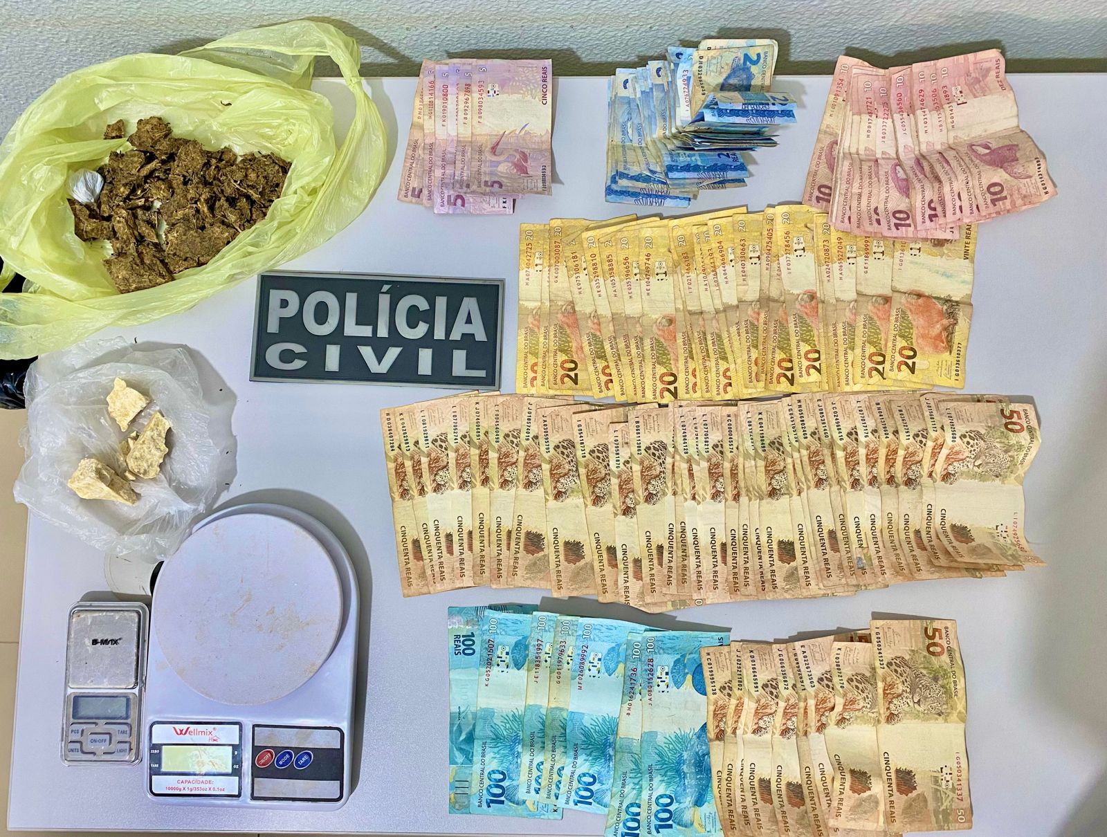 Durante a operação, além das substâncias ilícitas apreendidas, incluindo porções de maconha e pasta base de cocaína, também foram encontradas dinheiro em espécie, sem comprovação de origem legal, e registros relacionados à organização criminosa.