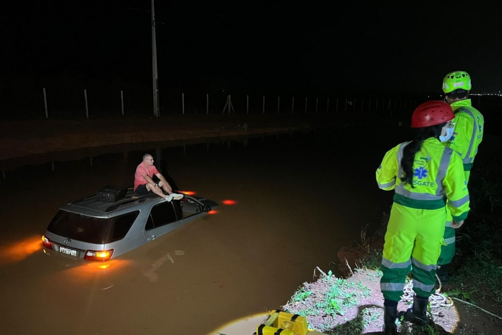 O carro quase ficou submerso e para escapar do risco de afogamento, o motorista, que não teve a identificada divulgada, se refugiou no teto do carro até que a equipe de socorro chegasse.
