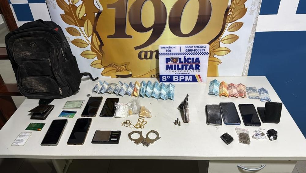 Já com os outros dois suspeitos, foram apreendidas porções de drogas e quantia em dinheiro. Eles receberam voz de prisão e foram conduzidos para a delegacia de Alta Floresta para registro da ocorrência e demais providências.