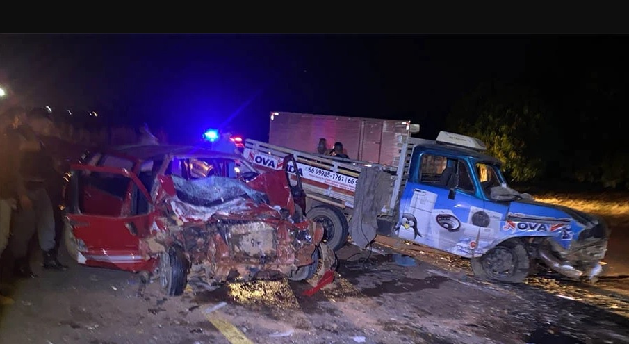 A colisão frontal envolveu um Fiat Uno, conduzido por Izael Paulo de Souza, que transportava quatro passageiros, e uma caminhonete D10, dirigida por Adilson José da Silva.