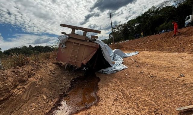 Além da vítima fatal, foi identificado vazamento de diesel do tanque do caminhão. Os bombeiros militares realizaram o isolamento da área e a identificação dos riscos, verificando que, devido ao relevo da região, não havia possibilidade de espalhar para áreas ao redor.
