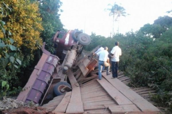 Um caminhão caçamba Mercedes-Benz modelo 1517 caiu com a traseira dentro de um rio, na zona rural de Alta Floresta, na terça-feira à tarde, depois que a ponte de madeira não suportou o peso do veículo carregado. Foi mais uma ponte velha de madeira que se quebrou no interior de Mato Grosso. O governo do Estado destinou, recentemente, recursos para recuperação das estruturas.