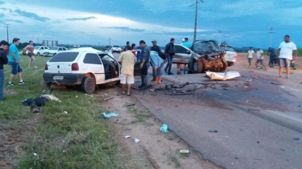 Os veÃculos envolvidos no acidente foram 01 Gol branco, Placa CNS 4037 de Novo Mundo, onde estavam as quatro pessoas que faleceram, sendo o casal e seus dois filhos, ou seja, duas mulheres, o condutor do veÃculo e uma criança do sexo masculino( 07 anos), que chegou a ser socorrido e encaminhada ao Hospital Municipal de Matupá, mas não resistiu e faleceu. O casal foi identificado até agora por ser Edilene Loiola Menezes e Ademir Ferreira dos Santos.