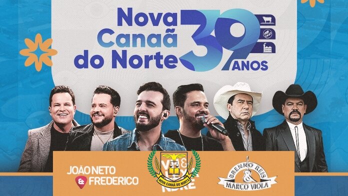 Com uma programação diversificada e cheia de alegria, Nova Canaã do Norte se prepara para celebrar seus 39 anos de história com muita festa, fé e união!