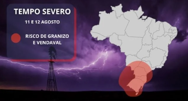 Uma nova frente fria está prevista para avançar sobre o Sul do Brasil a partir da próxima sexta-feira (11). Além de chuvas, sistema vai provocar ventos fortes e granizo.