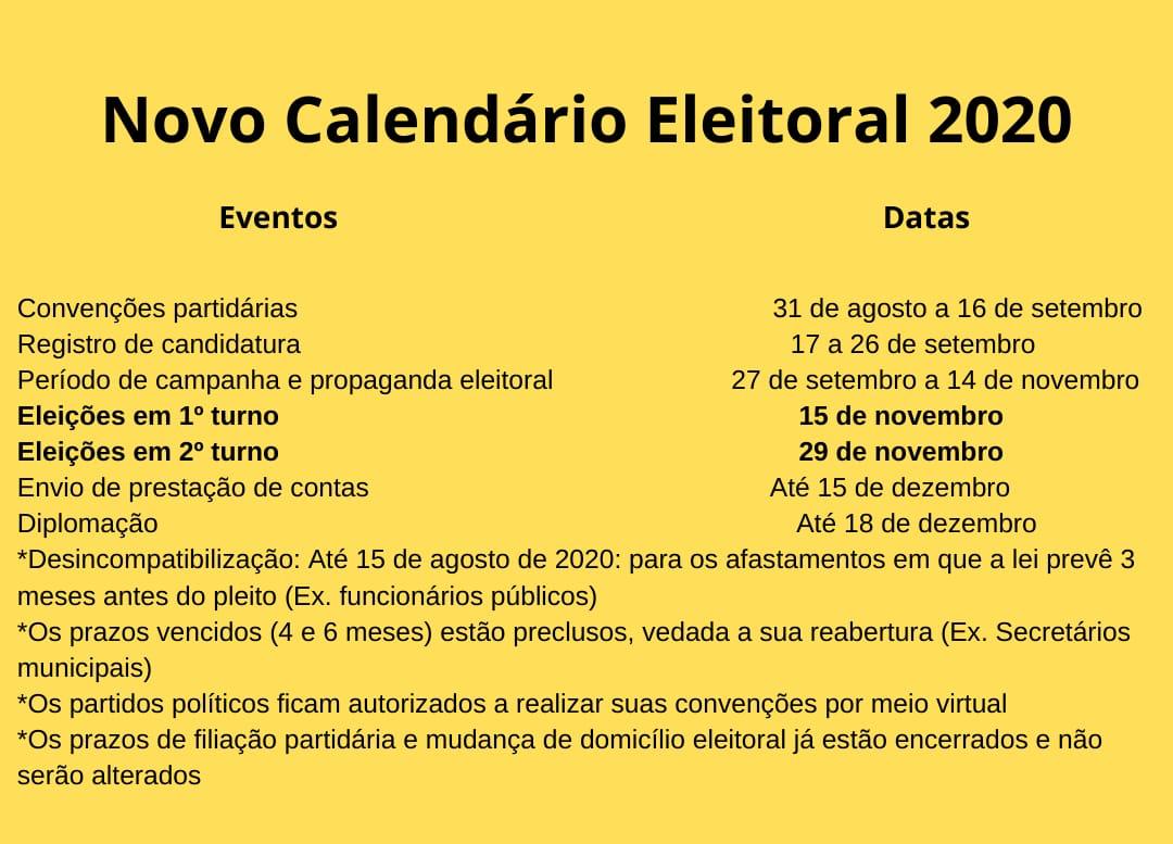 Início COMUNIDADE EM PAUTA NOVO CALENDÁRIO ELEITORAL 2020