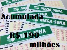 Com quinze concursos acumulados, a estimativa do prêmio da Mega-Sena concurso 2.236, a ser sorteado a partir das 20h deste sábado(22) é de R$ 190 milhões.