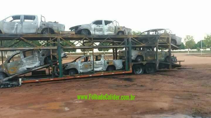 Oito caminhonetes e uma carreta “cegonha†que tinha como destino Novo Progresso,  foram incendiadas na noite da quinta-feira (06), no posto de combustÃvel Glória, em Cachoeira da Serra, saÃda para Castelo de Sonhos, Pará. Quando duas carretas “cegonhaâ€, cada uma com 08 veÃculos pertencentes ao IBAMA, estavam estacionadas no pátio do referido posto onde os motoristas pararam para descansar, e durante a madrugada se despertaram com os veÃculos em chamas, sendo destruÃda totalmente uma das carretas com os veÃculos, enquanto que a outra o fogo iniciou,  mas foi apagado, e já retornou para Mato Grosso.