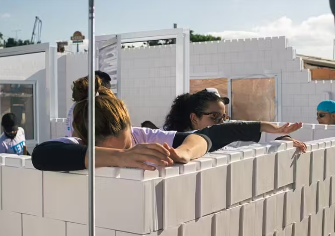 As estruturas se encaixam como se fossem blocos de lego, proporcionando rapidez na montagem da residência. Foto: Reprodução/TETO Brasil.