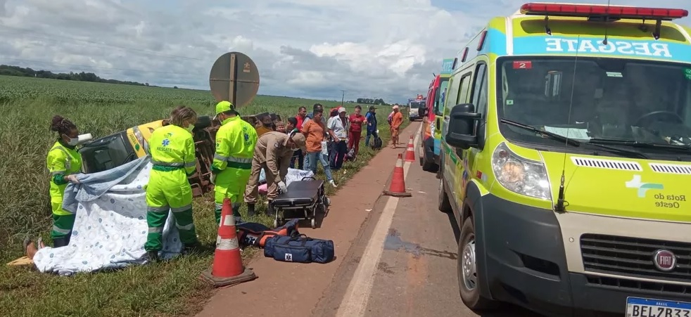 De acordo com a Concessionária Rota do Oeste e a Polícia Rodoviária Federal, as equipes foram acionadas às 9h15 para o atendimento de uma ocorrência no km 661 da BR-163, envolvendo o tombamento de um ônibus de viagem sobre a faixa de domínio sentido norte.