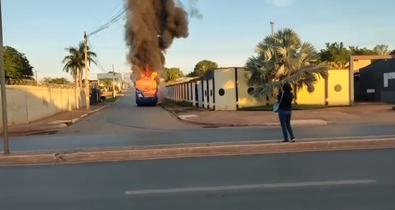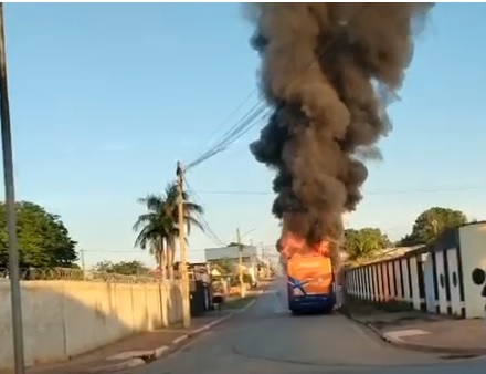 Um ônibus da empresa União Transportes pegou fogo na madrugada desta terça-feira (25) em Várzea Grande. O veículo atendia a linha 854 que liga os bairros São Mateus e Jardim  Marajoara quando as chamas começaram.