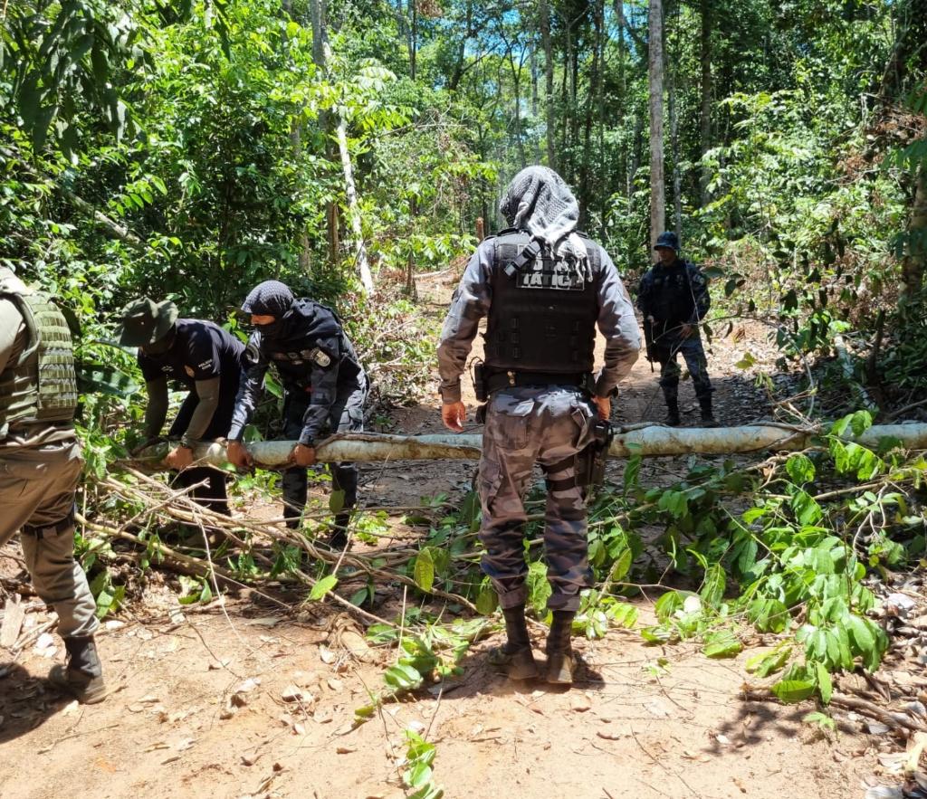 Atuaram nas ações visando o combate ao desmatamento ilegal, a Polícia Civil, por meio da Delegacia Especializada do Meio Ambiente (Dema), a Secretaria de Estado do Meio Ambiente (Sema) e Polícia Militar, por meio da Força Tática.![]()