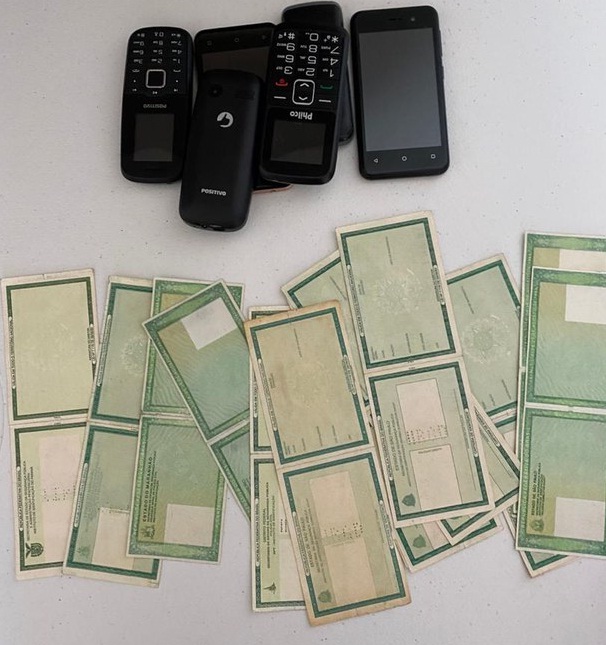 Na data de hoje, foram apreendidas centenas de aparelhos de telefones celulares nas residências dos envolvidos. Suspeita-se que os aparelhos sejam utilizados no cadastramento do aplicativo CAIXA TEM, a fim de efetuar os saques das parcelas do auxílio emergencial.