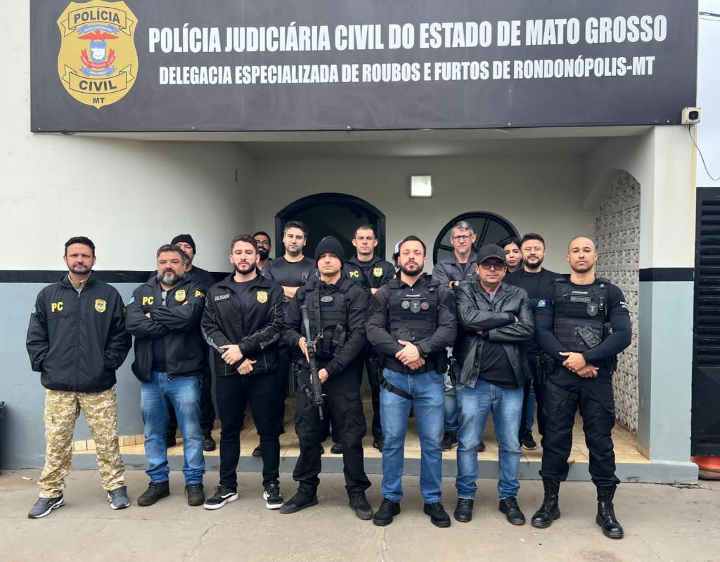 O trabalho operacional foi realizado pela Delegacia Especializada de Roubos e Furtos (Derf) de Rondonópolis, em apoio à 1ª Delegacia de Dourados, da Polícia Civil do Estado de Mato Grosso do Sul.