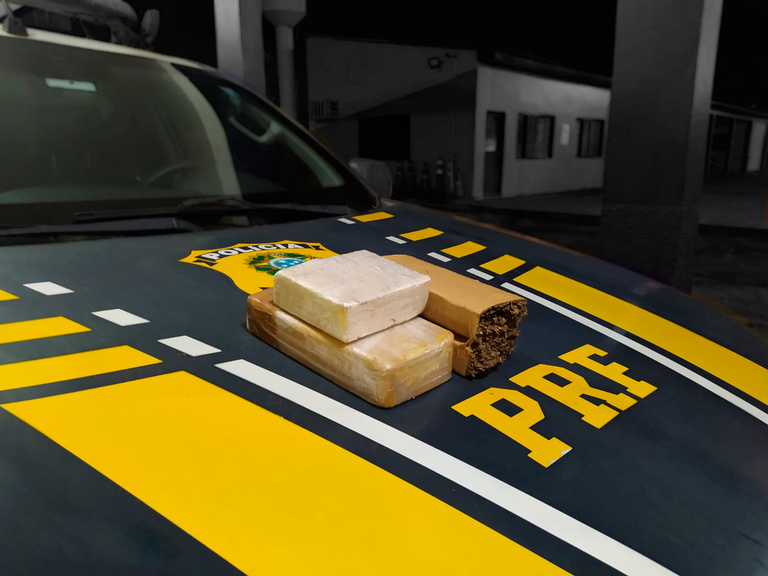 Diante disso, foi realizada uma busca nas bagagens e pertences da passageira, momento em que foram encontrados três tabletes de droga, sendo que cada um era de uma substância diferente, 1 kg de maconha, 1 kg de pasta base de cocaína e 250g de cocaína.