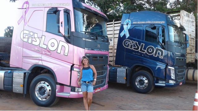 ColÃder recebeu na  tarde da sexta-feira(12) duas carretas que chamam a atenção de quem passa, uma azul, em alusão à prevenção do câncer de próstata e outra cor-de-rosa, conduzida pela caminhoneira catarinense Rosa Maria Richartz, de 34 anos. Ela vai percorrer um total 2.800 km a bordo da Volvo FH, o primeiro que saiu da fábrica na cor rosa. As referidas carretas ficaram um bom tempo estacionadas em um posto na saÃda para Alta Floresta.