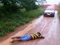 A Policia Militar foi informada na tarde da quinta  feira (30) sobre um corpo de que estava no meio da estrada conhecido apenas com estrada do Zé Doca, de imediato a guarnição Policial comandada pelo Aspirante Santana se deslocou ao local do fato quando os PMs chegaram localizaram o corpo de um jovem aparentando ter aproximadamente entre 19 e 25 anos a vitima estava deitado de bruços com sinais de disparo de arma de fogo próximo a nuca, após a verificação e confirmação do óbito foi solicitada a presença da “POLITEC†que após fazer os primeiros levantamentos periciais liberou o corpo até aquele momento sem identificação para a casa funerária, pois a vitima não portava qualquer tipo de documentação.