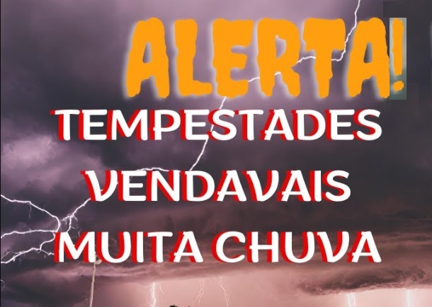 Há risco de corte de energia elétrica, estragos em plantações, queda de árvores e de alagamentos.