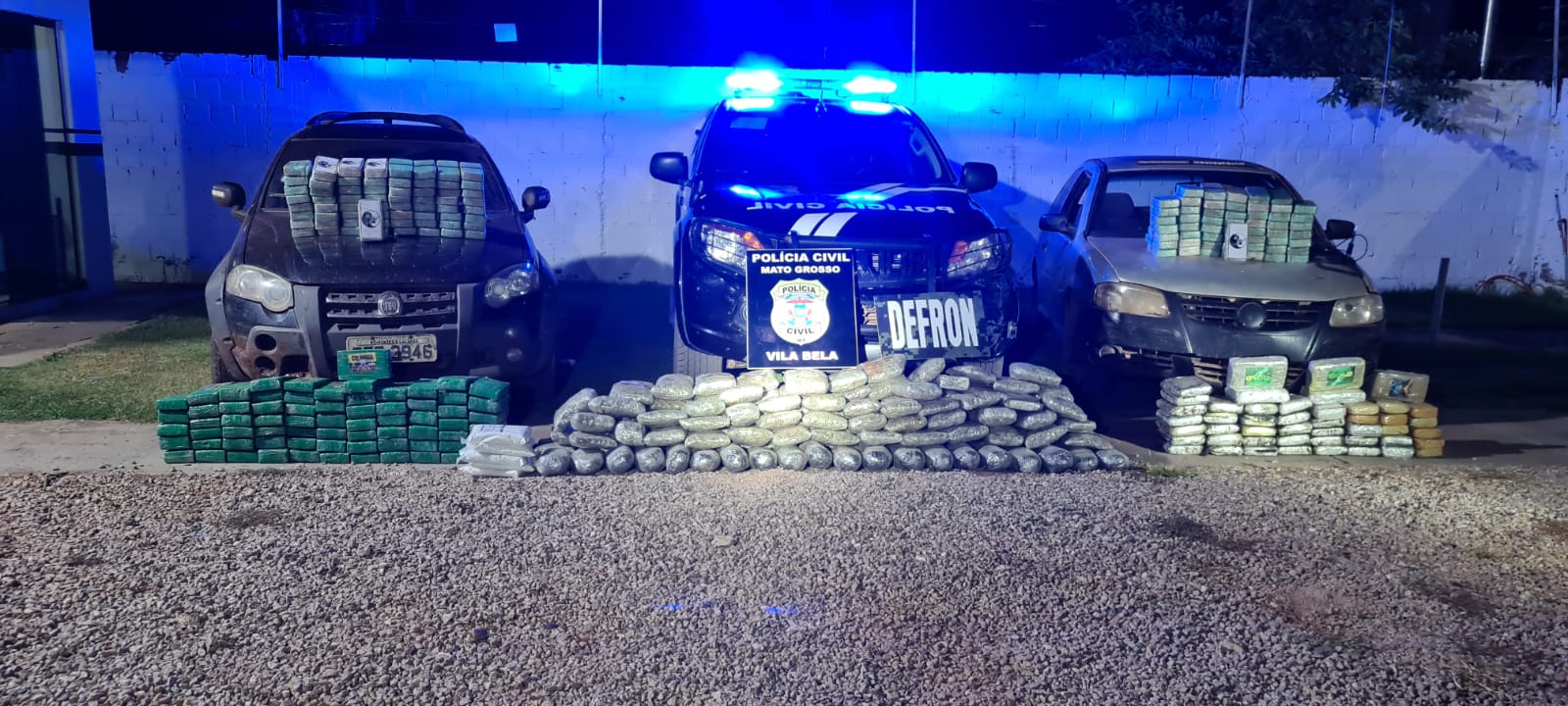 A Polícia Civil apreendeu 365 tabletes de entorpecentes na noite de sábado (11), no município de Vila Bela da Santíssima Trindade (521 km de Cuiabá). Além do grande carregamento de substâncias ilícitas, entre pasta base de cocaína e maconha, houve a apreensão de dois veículos e três rádios comunicadores.