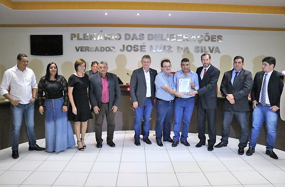 Lázaro da Silva, gerente do Supermercado Machado, foi homenageado com o TÃtulo de Cidadão Colidense, de autoria do vereador Ricardo Caldeira Rezende (Lika – PSDB).