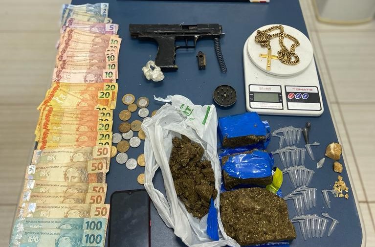 Em buscas na casa, os militares apreenderam ainda uma pistola de fabricação artesanal, uma balança de precisão, um aparelho celular, uma corrente de ouro e R$ 813,40 em espécie. O suspeito e todo material apreendido foram levados à delegacia para registro do boletim de ocorrência e demais providências cabíveis.