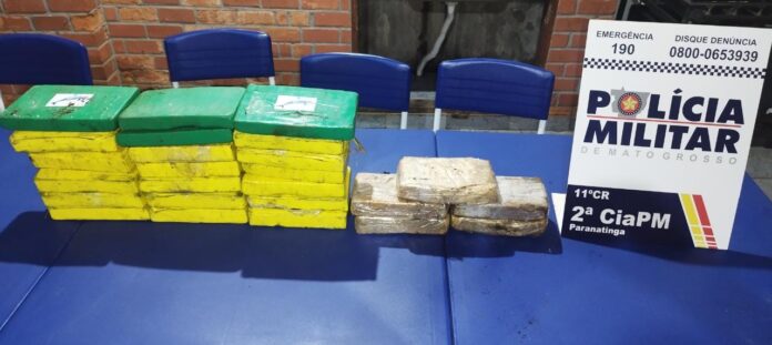 Ação integrada entre a Polícia Militar e Polícia Rodoviária Federal resultou na apreensão de 20 tabletes de cloridrato de cocaína e cinco tabletes de pasta base, na madrugada desta segunda-feira (17.07), em Paranatinga. Dois homens, de 40 e 59 anos, foram presos em flagrante por tráfico de drogas.