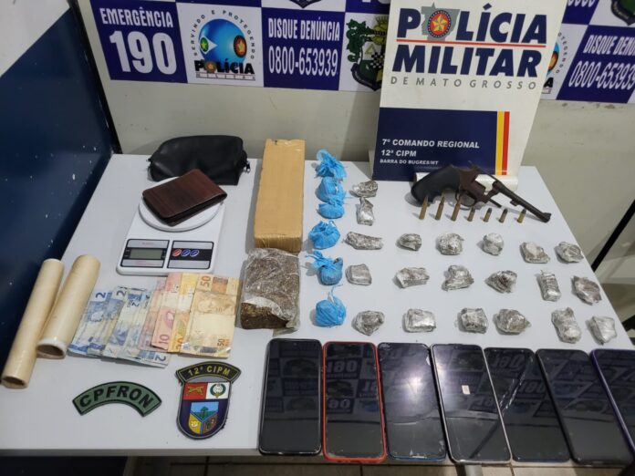 Policiais militares de Barra do Bugres prenderam três mulheres e dois homens por associação para tráfico de drogas e porte ilegal de arma, no final da tarde desta segunda-feira (18.08). Com a quadrilha, a PM apreendeu um revólver calibre .32, munições, dois tabletes e porções de substância análoga a maconha.