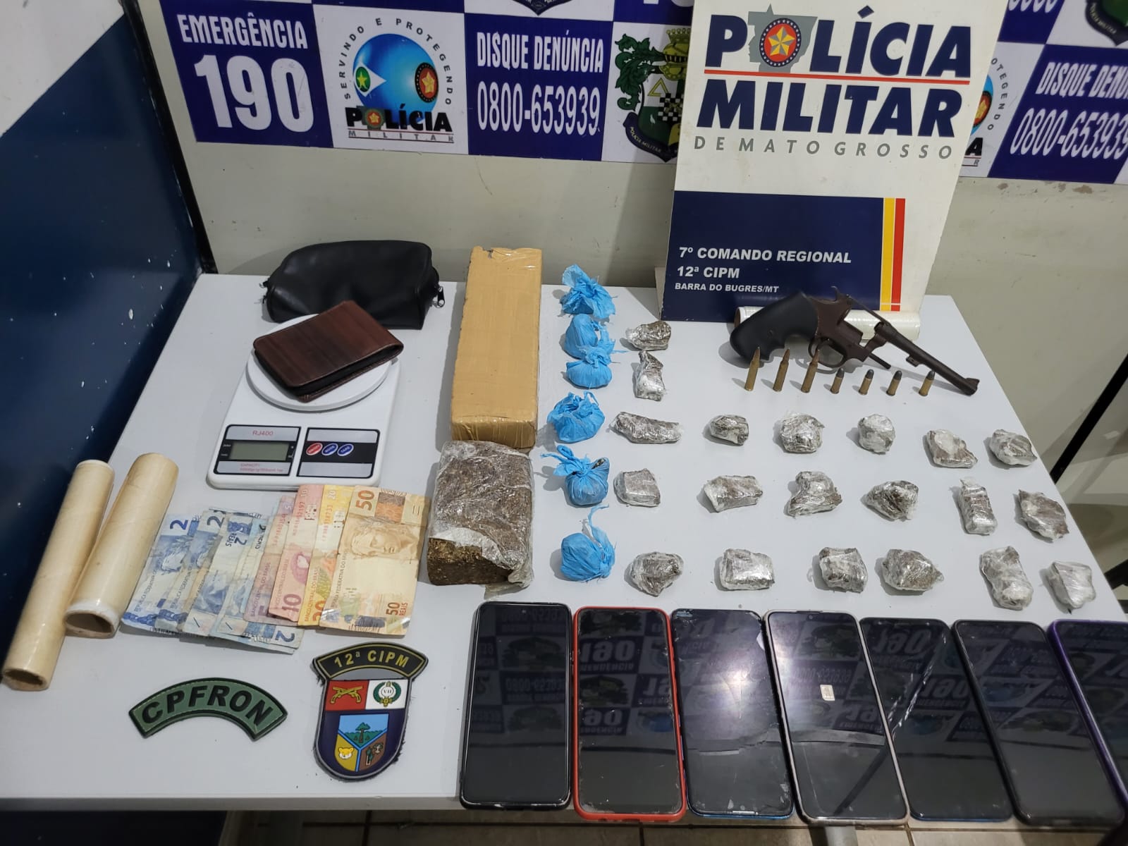 A equipe da 12ª Cia de PM iniciou diligências na cidade após receber denúncia sobre uma quadrilha de integrantes de uma organização criminosa que estariam comercializando drogas, na cidade de Barra do Bugres. A denúncia também dizia que o líder da quadrilha residia no bairro Barra Bonita e vendia as drogas com sua esposa e sua avó.