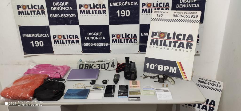 Policiais militares do 10º Batalhão prenderam em flagrante um homem de 28 anos por porte ilegal de arma e receptação, na noite desta terça-feira (06.06), em Cuiabá. Na ação, a PM apreendeu um revólver calibre .32 e recuperou um veículo Fiesta Hatch, que havia sido adulterado pelo criminoso.