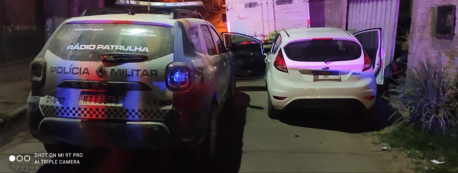 Por volta de 22h, a equipe do 10º BPM em rondas pelo bairro Alvorada visualizou um veículo Fiesta Hatch branco parado em uma rua. A mesma equipe tinha informações sobre um carro, com as mesmas características, que teria sido roubado no dia anterior e procedeu abordagem ao condutor, que fugiu em alta velocidade.