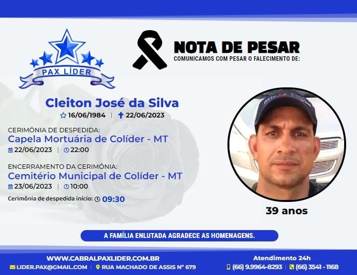 Foi quando da calibragem do pneu de um caminhão que o borracheiro Cleiton José(39), da comunidade Trevo Ouro Verde, no município de Colider foi vitimado pelo estouro do pneu que o atingiu na cabeça tirando sua vida na manhã desta quinta-feira(22)