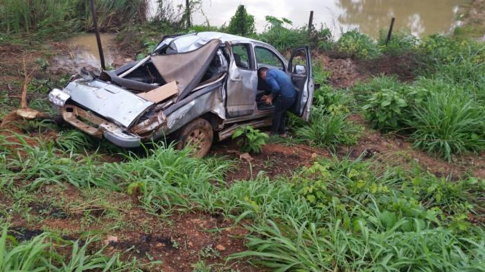 Conduzia  uma caminhonete GM S-10(prata) o Sr. Sebastião Carlos Ramos(67), na terça-feira(04), sentido Nova Santa Helena a Colider, e chovia muito quando  se aproximava do Túnel Motel, onde  ao passar por uma poça d`água  na pista  o seu veÃculo desgovernou, batendo no meio fio a caminhonete capotou e desabou em uma ribanceira, parando antes de cair no lago.