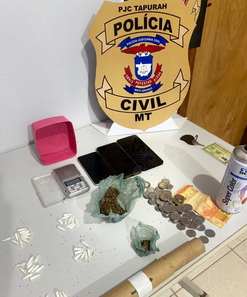 Dentro da residência estavam três usuários consumindo drogas e o proprietário do imóvel confessou que havia outros entorpecentes no local. Após busca domiciliar, foram apreendidas porções de maconha e à cocaína, além de uma balança de precisão, dinheiro e celulares.