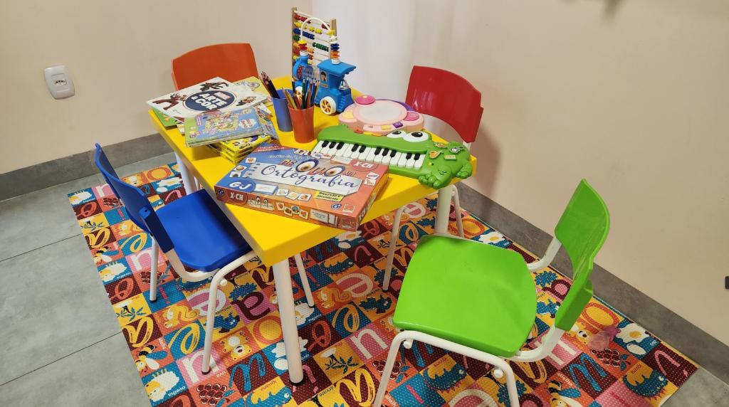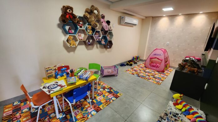 Os ambientes têm brinquedos, jogos e desenhos para pintura, que atendem a diferentes faixas etárias, oferecendo às vítimas e filhos de mulheres vítimas um ambiente mais humanizado para acolhimento de criança e adolescentes diversos tipos de abusos, principalmente para o sexual.