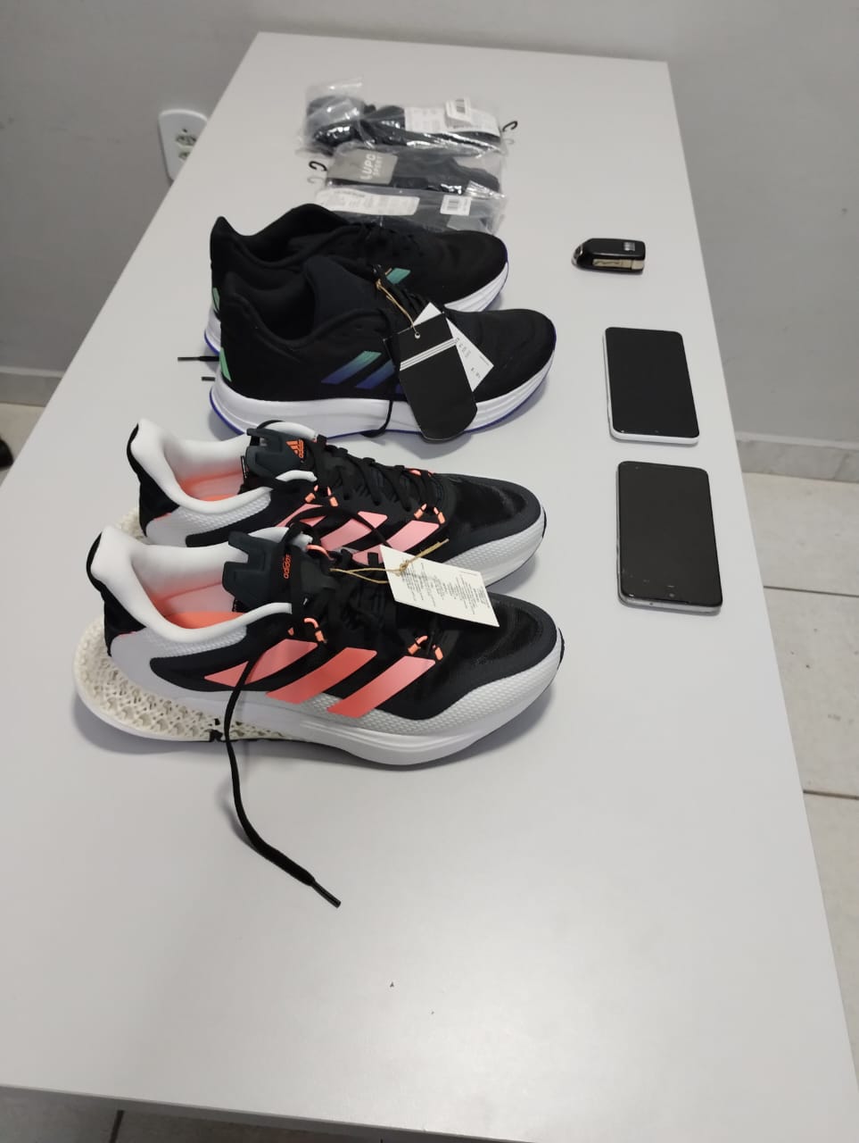 As diligências iniciaram logo o registro da ocorrência. Conforme narrativa, os suspeitos simularam o pagamento das mercadorias de uma loja de artigos esportivos, e conseguiram retirar os produtos.