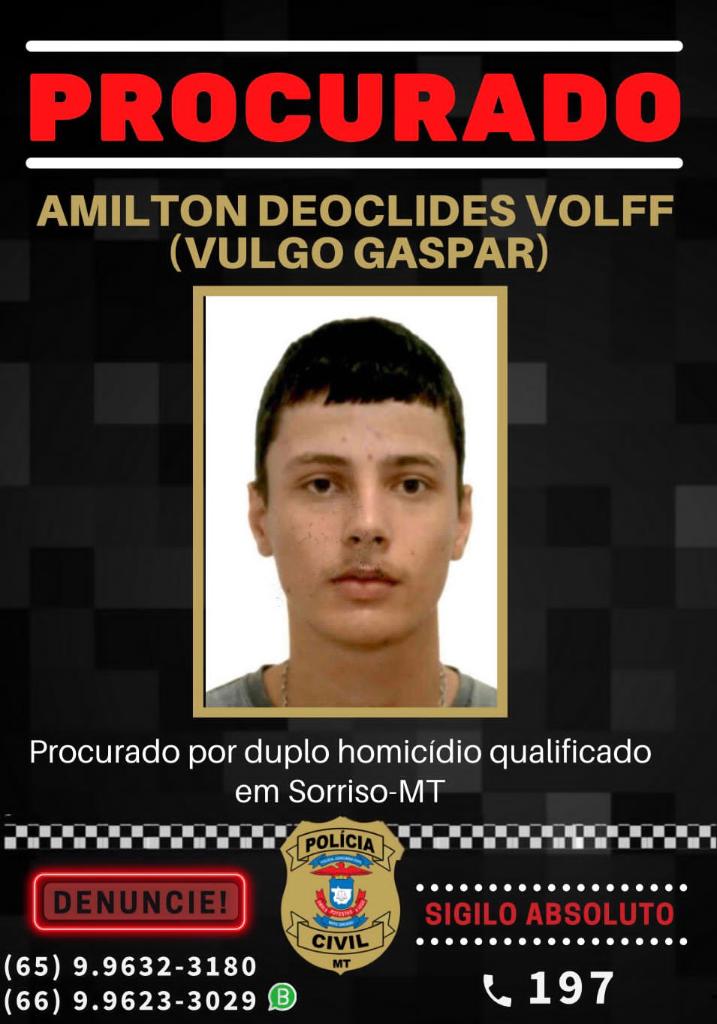 Informações que possam levar ao paradeiro dos procurados podem ser passadas ao disque denúncia da Polícia Civil, pelo 197, ou aos números da Delegacia de Sorriso: (66) 99623-3029 e (65) 99632-3180. O sigilo nas informações é absoluto.