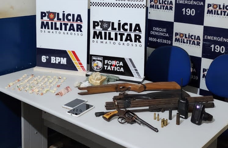Na ação, foram apreendidos um revólver calibre 38, uma espingarda cano duplo calibre 28, uma espingarda de pressão e mais 80 porções de substância análogas à pasta base de cocaína. Os militares receberam informações da localização de quatro homens suspeitos na tentativa de homicídio contra um homem, de 26 anos, no bairro Jardim das Oliveiras.