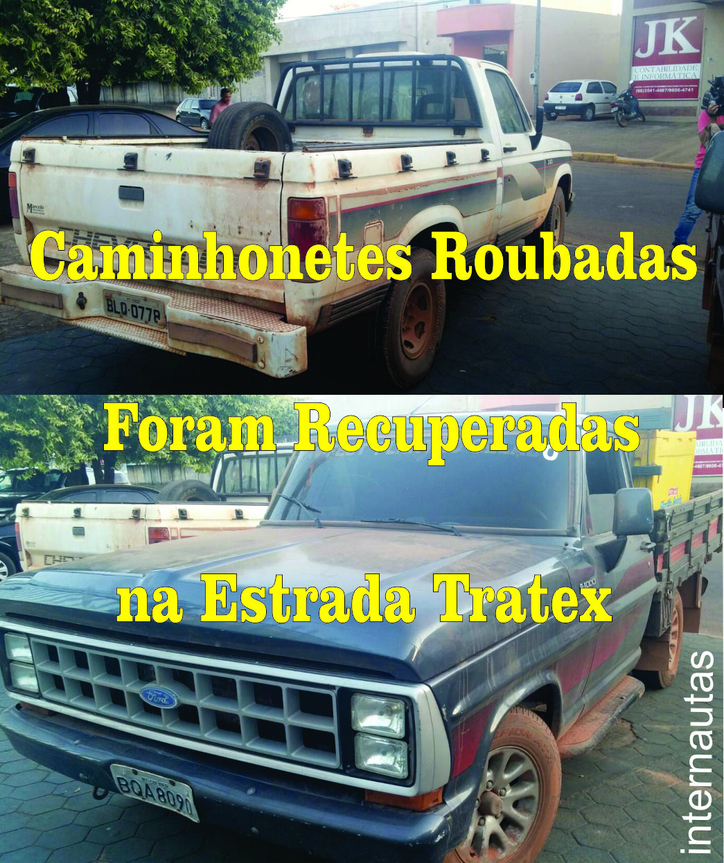 Início Policial PolÃcia recupera caminhonetes roubadas em Colider NotíciasPolicial PolÃcia recupera caminhonetes roubadas em Colider Por Folha de Colíder - 21 de agosto de 2015 131 0 FacebookTwitterPinterestWhatsApp           As duas caminhonetes que foram roubadas em Colider na noite da Quarta-feira (19), sendo uma F-1000, cinza, placa BQA 8090, com três caixas térmicas amarelas, na carroceria, de propriedade do Plantão Gelado, e uma D-20, branca, ano 1994, placa BQL-0778, foram recuperadas pela PolÃcia Militar de Colider, na quinta-feira, na Estrada Tratex, escondida no mato,  exatamente no mesmo rumo e do mesmo modo em que foi encontrada aquela roubada em junho deste ano, do Auri, do CTG, corroborando as opiniões dos bastidores em relação a esses roubos, que  dizem serem as caminhonetes levadas para garimpos onde o motor a diesel desses veÃculos tem mil e uma utilidades.            Da Redação Folha de Colider