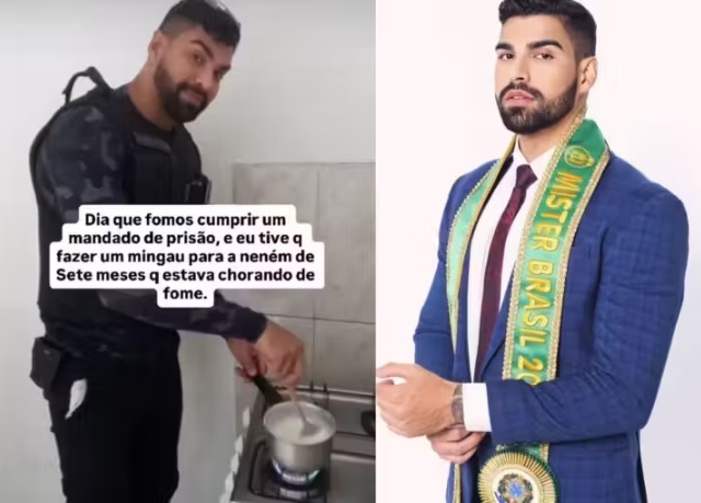 Paulo Roberto, o policial que parou a missão para fazer mingau para uma bebê que chorava de fome, foi Mister Brasil 2022. Vídeo viralizou. – Foto: reprodução redes sociais