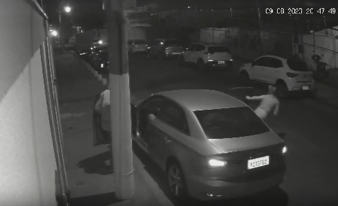 No vídeo, é possível ver o momento em que a dupla se aproxima do veículo estacionado em frente à academia e rende a mulher. A vítima consegue sair pela porta do passageiro e pede socorro. Em seguida, o policial militar se aproxima e atira contra os dois suspeitos que estavam no carro.