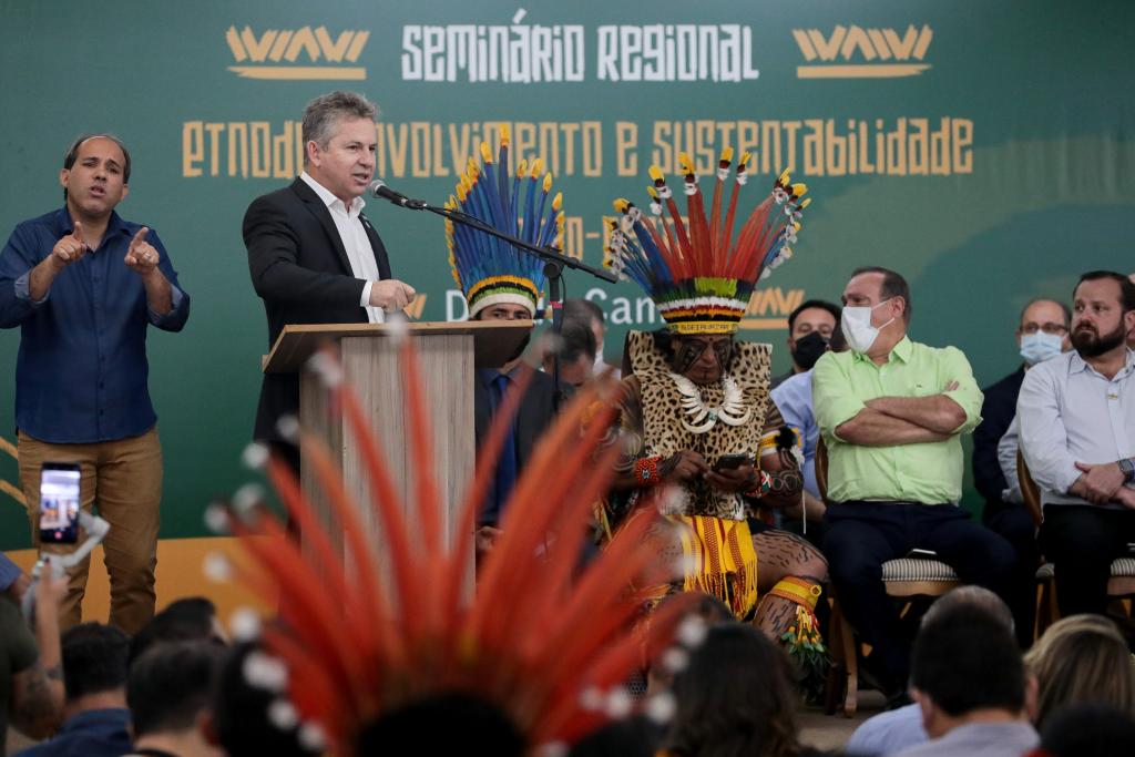 Mauro Mendes participou, na manhã desta quinta-feira (19.08), do Seminário Regional de Etnodesenvolvimento e Sustentabilidade, no Hotel Fazenda Mato Grosso, que visa promover o diálogo sobre perspectivas, ferramentas e instrumentos para o etnodesenvolvimento, com foco na abordagem econômica e de sustentabilidade socioambiental entre os indígenas, o Governo Federal, Estados, Municípios e a iniciativa privada.