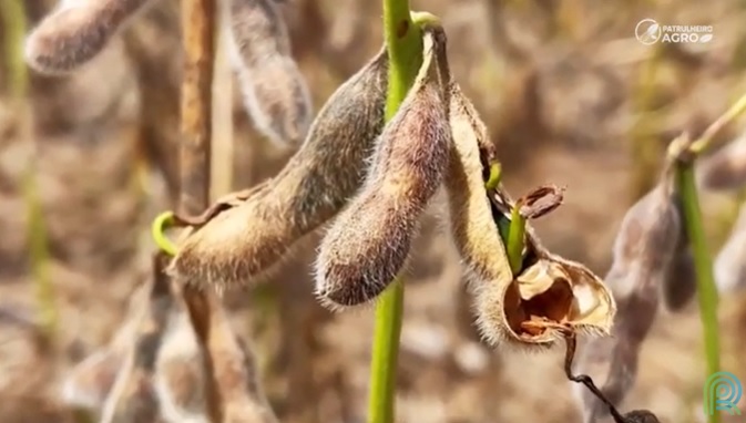 Soja brotando no pé. Imagem: reprodução vídeo