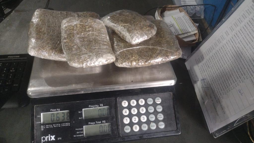 Os quatro pacotes pesaram junto 638 gramas de maconha – Foto por: Polícia Penal/ Sejus