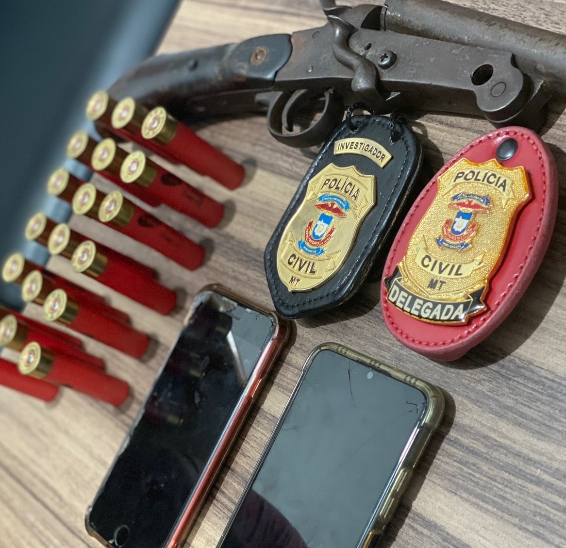 Na tarde desta segunda-feira, a equipe de investigadores recebeu informações de que o homem e a mulher estariam em uma fazenda, perto de Lucas do Rio Verde, onde foi feita a prisão dos investigados. Com os investigados foram apreendidas 19 munições de calibre 28 e uma arma de fogo.
