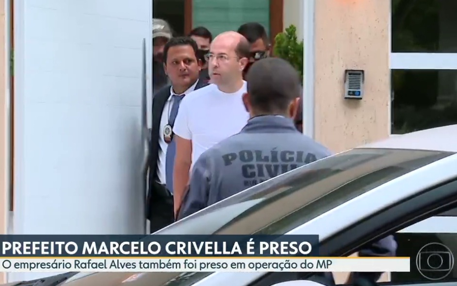 O prefeito do Rio de Janeiro, Marcelo Crivella, foi preso hoje (22), em sua casa, na Barra da Tijuca, e levado para a Delegacia Fazendária, na Cidade da Polícia, onde chegou por volta das 6h35. Também foram presos na mesma operação, o empresário Rafael Alves; o ex-tesoureiro da primeira campanha de Crivella, Mauro Macedo; os empresários Christiano Campos e Adenor Gonçalves, e o delegado aposentado Fernando Moraes. O ex-senador Eduardo Lopes não foi encontrado no endereço no Rio de Janeiro.