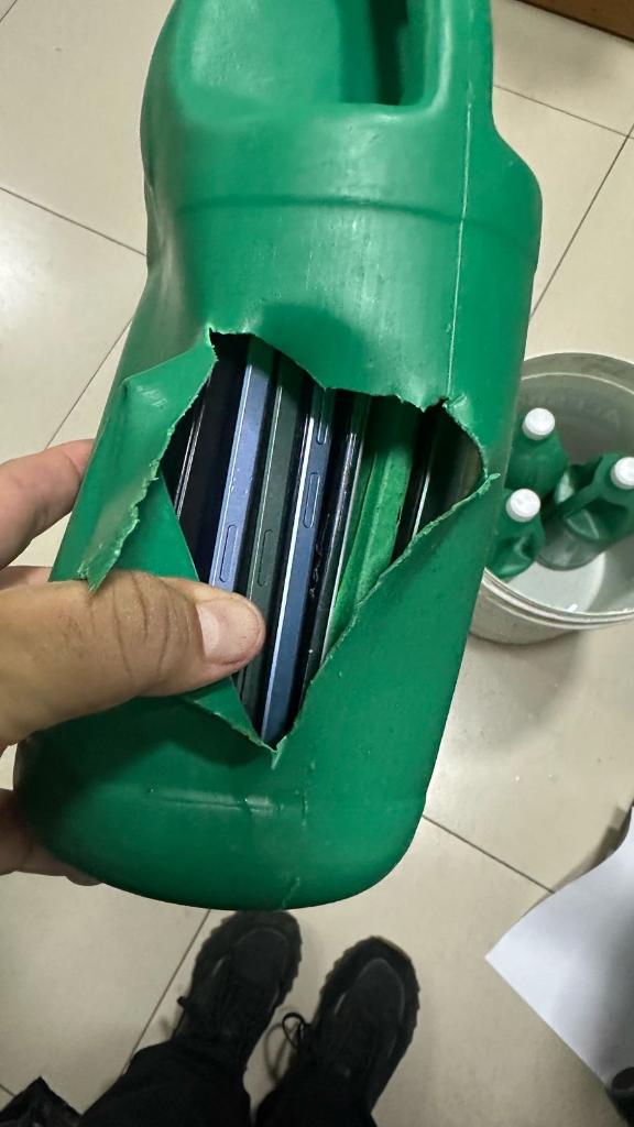 O gestor chama atenção para a forma usada pelos reeducandos para tentar transportar os celulares, usando vasilhames de produtos de limpeza que, certamente, foram inutilizados e os frascos usados para camuflar os celulares