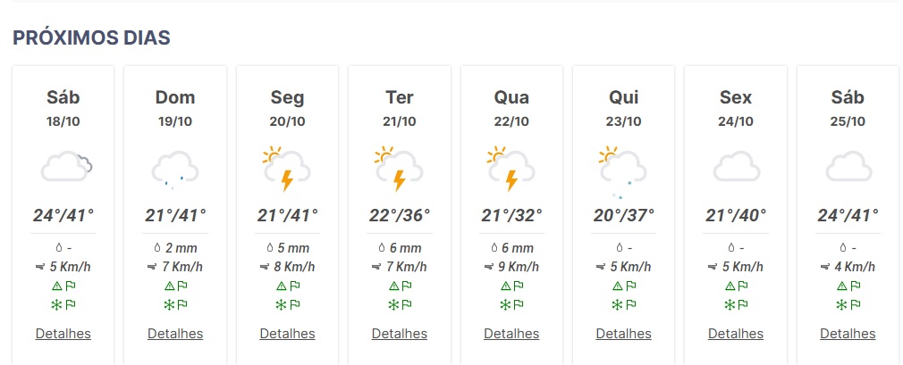 Início Meio Ambiente Previsão do tempo em Colíder (MT) hoje(17) AGRONOTÍCIASMeio Ambiente Previsão do tempo em Colíder (MT) hoje(17) Por Folha de Colíder - 17 de outubro de 2025 272 0 FacebookTwitterPinterestWhatsApp 7/10 | Hoje Agrolink