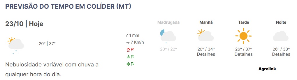 PREVISÃO DO TEMPO PARA COLIDER HOJE(23/10)