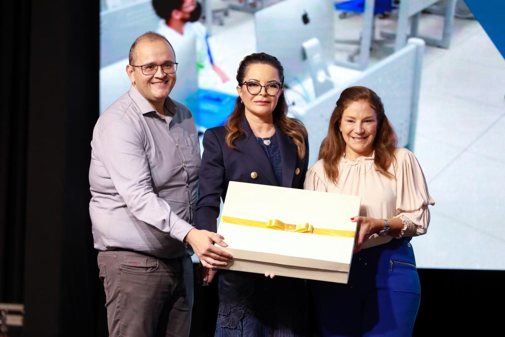 Durante a abertura, a primeira-dama do Estado foi surpreendida com uma homenagem do Sesi/Senai, representados pela coordenadora de Responsabilidade Social e Inclusão, Denise Molina. “Nós temos 50 mil motivos para agradecer esse ser iluminado que é a Virginia Mendes, essa lembrança simboliza o que você pensou para as famílias em cada município, a ‘Oração da Família’ e o desejo que cada família dos 141 municípios seja abençoada com oportunidade e prosperidade”, declarou Denise.